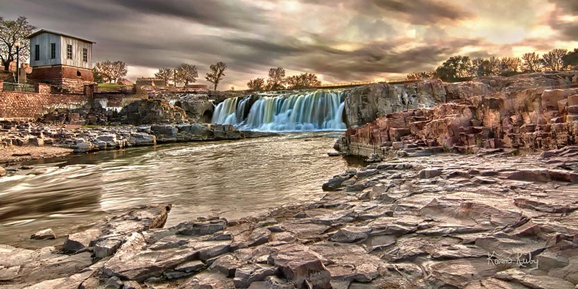 Early history reveals that Tribes of the Lakota and Dakota arrived in the 18th century and used the falls to rendezvous with French fur trappers. Lewis and Clark also described the falls in their journal. In the mid 1850’s, a town was organized near the falls, fueled by the economic potential of the Sioux Falls waterfall.  In August of 1862, the town was abandoned due to fear of violence from the local Native Americans.  Raiders burned the buildings and destroyed everything.